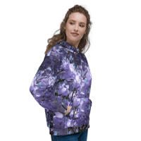 A beautiful close up of a Jacaranda tree flower. Hoodie has a relaxed fit and super soft fabric thanks to the unique cotton and polyester blend. The brushed fleece inside makes this hoodie a true wardrobe favorite. Not only will the Hoodie keep you nice and warm, you will also look great too!